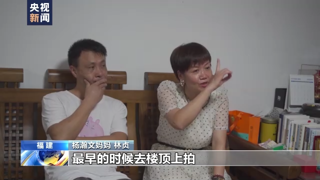 杨瀚文妈妈 林贞:最早的时候去楼顶上拍,那个时候还很小,设备很多,包括赤道仪很重,时间很长,他要从晚上拍到凌晨。所以我就跟着他,要扛好多趟。孩子就特别吃苦,他就自己背,重的都他拿,轻的都我拿。有时候冬天他也自己上去,真的是寒冷、孤独、寂寞、失败,可能真的都有,他自己在那边顶着。特别是冬天的手都冻裂了,裂开了血口,在厦门很难看到生冻疮、裂口等等。