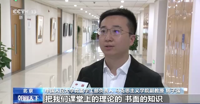 中国人民大学党委学工部负责人马克思主义学院副教授杨子强:把课堂上理论的、书面的知识变成生活场景中大家正在经历着的新时代的故事。在故事当中、在真实的人的身上来感受新时代的磅礴力量,成为孩子们很好的励志素材,帮助他们从小立大志、干大事,更好地为我们党培养人才。