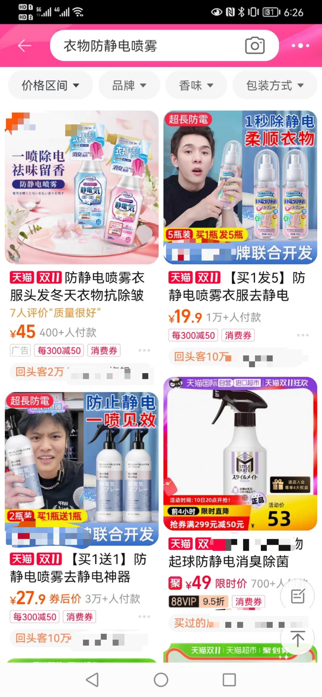 △电商平台中,防静电喷雾很受欢迎购物软件截图