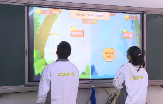 徐老师表示,希望通过小游戏的方式,帮同学们纠正错误,强化记忆,提高大家的答题速度和正确率。在玩“历了个史”的时候,同学们或一个个上台或两两对战,徐老师从中考察学生们对历史知识的掌握情况,一旦有同学顺利通关,课堂上就会传来阵阵掌声,遇到没做对的同学,也会引来善意的笑声,课堂氛围轻松愉快。