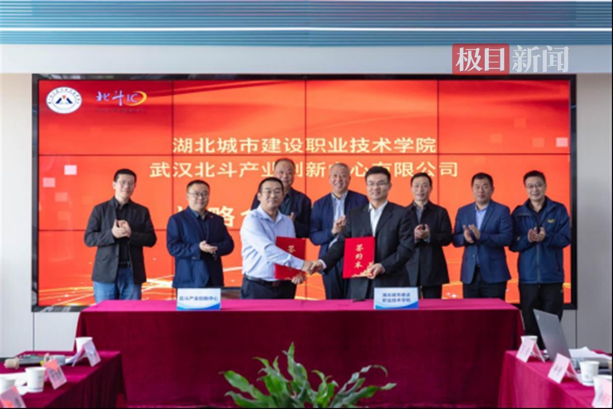 近日,湖北城市建设职业技术学院与武汉北斗创新中心有限公司在光谷东北斗大厦10楼签署战略合作协议。学校党委书记程超胜、武汉北斗产业创新中心有限公司董事长余峰、武汉梦芯科技副总经理张践等领导见证了签约仪式。学校副校长易操、武汉北斗产业创新中心有限公司政府事务部部长徐辅廷代表双方签约,学校对外交流与合作处处长钱华、市政工程学院总支书记文学、副院长孔俊杰、测绘工程系主任王玉香等参加了签约仪式。