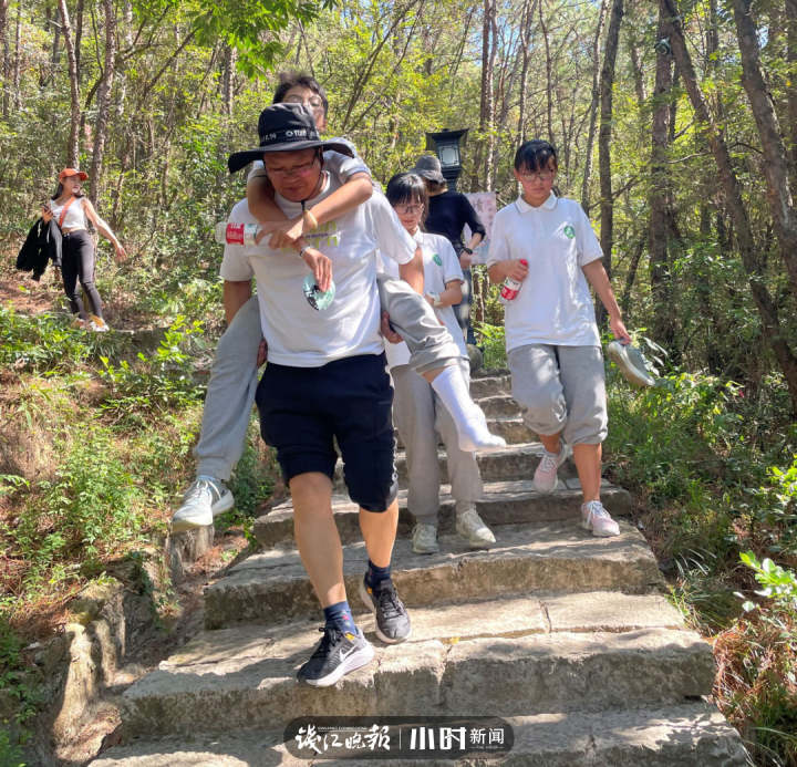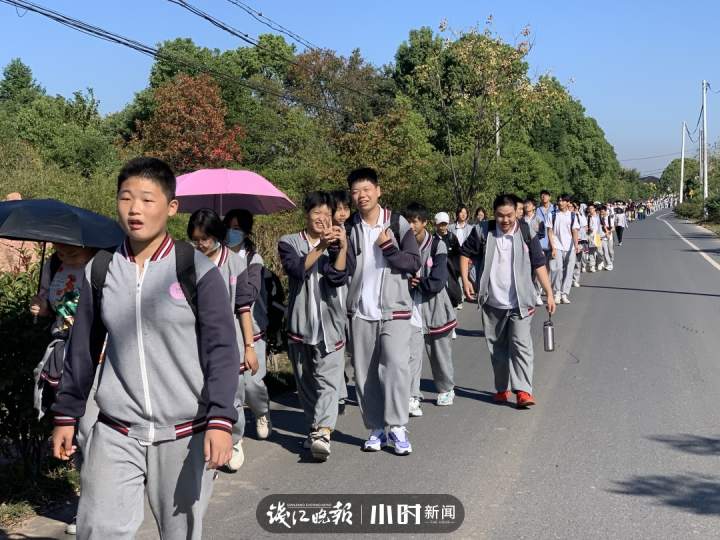 活动最后,刘校长在校门口迎接同学们归来。有同学走过,他都会表扬、鼓励。“我看到有男同学背着七八个书包,边上同学吃不消了,他就拿过背包,自己负重前行。”这次远足,学校特地找人拍摄了视频,给学生们留作纪念,“这是他们成长路上,刻骨铭心的回忆。”