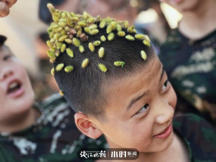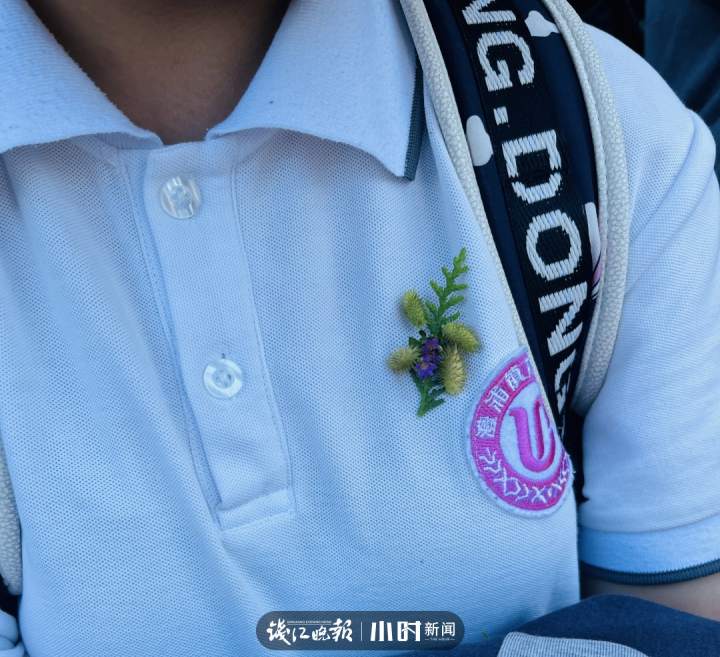 在远足途中,同学们摘来野草野花,别在胸口,戴在头上,都变成了独家定制的小小“勋章”。一路上的欢声笑语,让他们忘记了成长的烦恼,学业的压力。