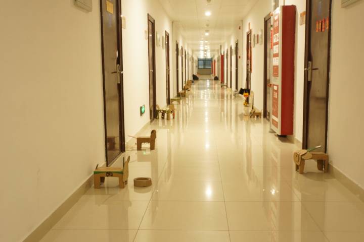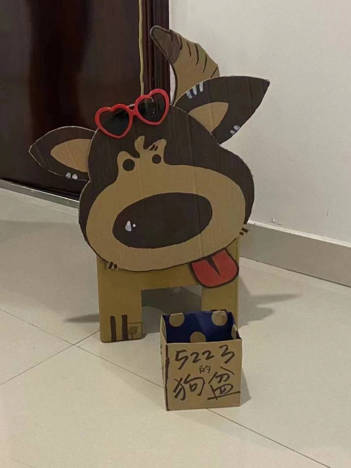 有了纸盒狗之后,同学们纷纷实现了“养狗自由”,并且像对待宠物一样对待纸盒狗,散步,喂食,一样不少。