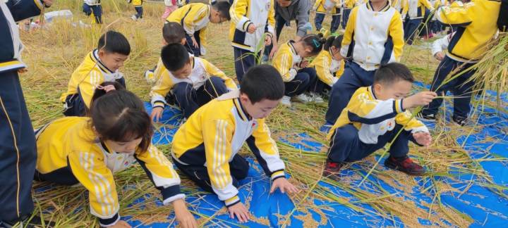 小朋友们齐齐参与到秋收劳动中,筑成一个远离喧嚣的世界,短短的时间,这里便成为了小朋友们新的“打卡圣地”。小朋友们还玩起了田间游戏。有的在玩稻穗接力,有的田间奔跑,有的在拾稻穗,有的在画稻穗,有的在和稻田合影。