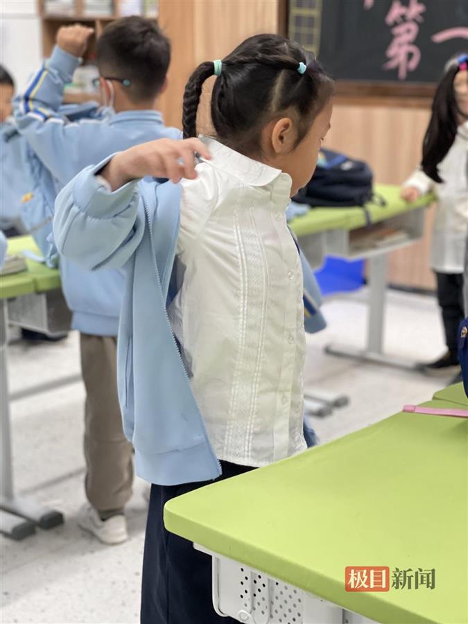 极目新闻记者观察到,有些同学拉拉链时出现了困难,出现错位等情况,但是孩子们毫不放弃,一遍一遍尝试,最终成功完成比赛。