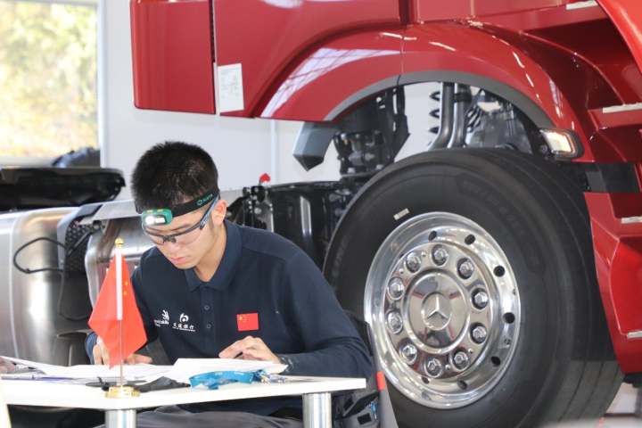 重型车辆技术项目共6个比赛模块,11名选手参赛,其中欧美选手9人、韩国1人、中国1人。赛事车辆全部采用国际高端品牌,如设计梅赛德斯奔驰卡车、利勃海尔轮式挖掘机和发动机、宝马格压路机、威克诺森翻斗车、麦赛弗格森拖拉机等,机械构造十分复杂,部分车型在国内没有销售、难以见到。