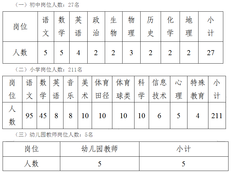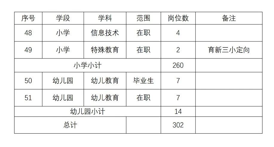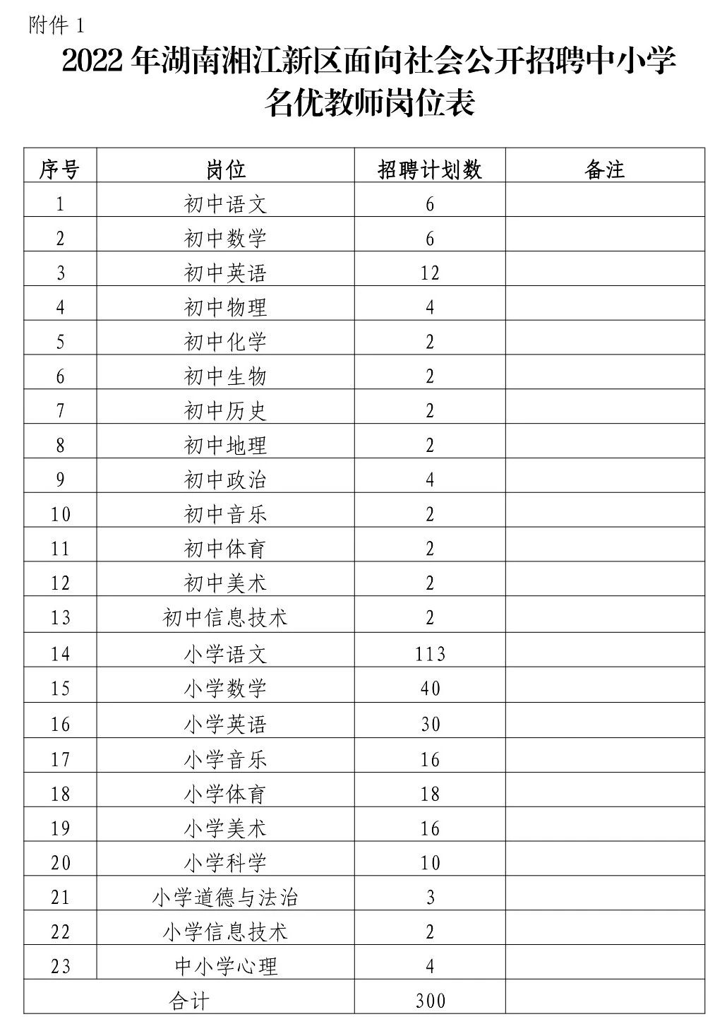 本次公开招聘中小学教师岗位共23个,招聘计划300名,分岗位组织招聘。列入相应事业单位编制,实行合同聘用制管理。其岗位等级待参加单位竞聘后确定。