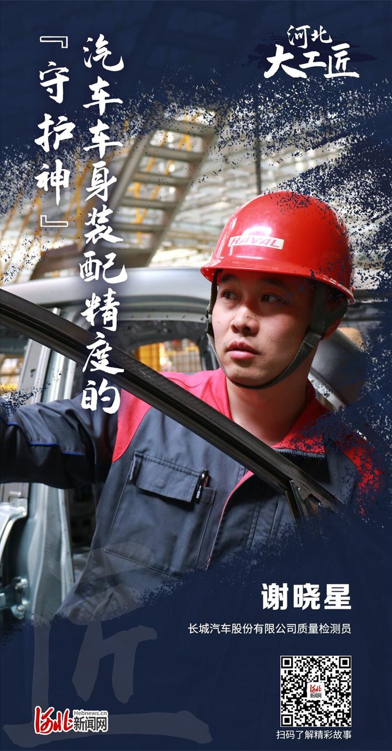 【人物名片】谢晓星,男,1987年出生,2008年进入长城汽车股份有限公司,现为长城汽车股份有限公司质量检测员。他撰写的《一种旋转夹紧装置》和《前纵梁结构与汽车车身》获国家专利,发表国家级论文11篇。带领团队开展创新改善课题175项,成功解决产品设计及制造缺陷等问题280项,累计为公司创效5373.22万元。被授予全国五一劳动奖章,被评为2022年度“河北大工匠”。