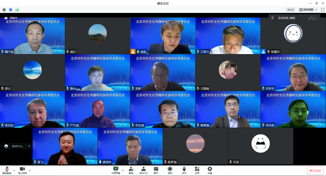 央广网北京12月19日消息为更好地为北京对外文化传播提供智库服务,助推北京国际传播能力建设高质量发展,12月15日,北京对外文化传播研究基地举办2022学术委员会工作会议。