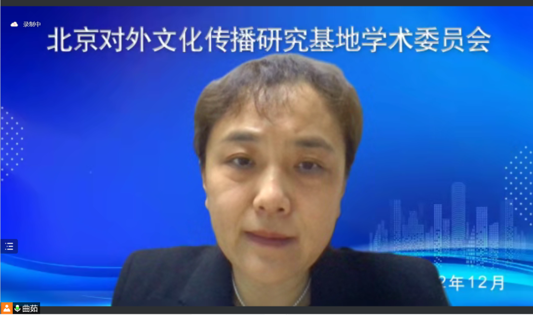 北京第二外国语学院北京对外文化传播研究基地主任、首席专家曲茹教授汇报基地发展情况(主办方供图,央广网发)