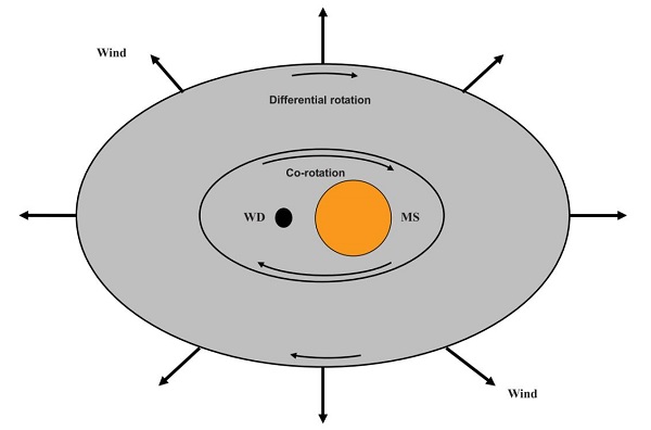 共有包层星风模型,则是针对单简并星模型缺点所提出的一种改良,这种模型认为共有包层表面会发生强烈的物质损失,导致包层的密度很低,双星并合需要的时间很长,所以白矮星有足够的时间积累物质,从而发生Ia型超新星爆炸。但是共有包层表面的物质损失是如何产生的,以及这种系统有什么样的观测特征还不是很清楚。