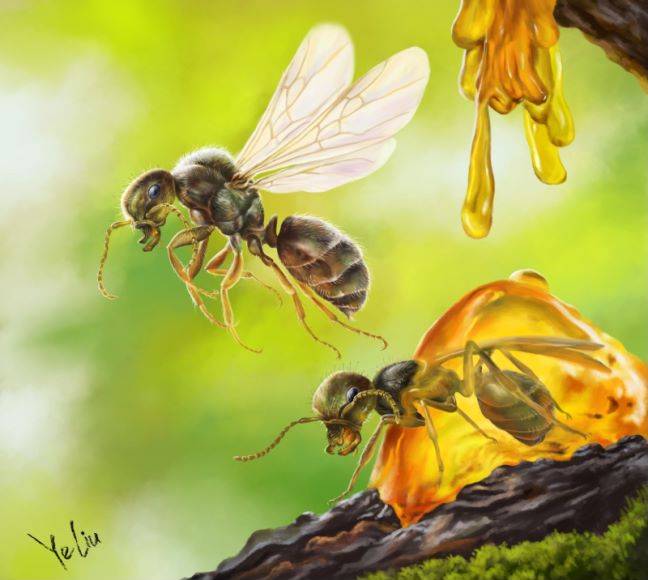 在琥珀中发现蚂蚁,保存有精美的内部解剖结构