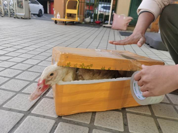 于是在大家决定后,袁老师立刻行动起来,一共6只鸡,3只麻鸭,2只大白鸭,通过朋友圈卖了3只鸡和1只大白鸭。