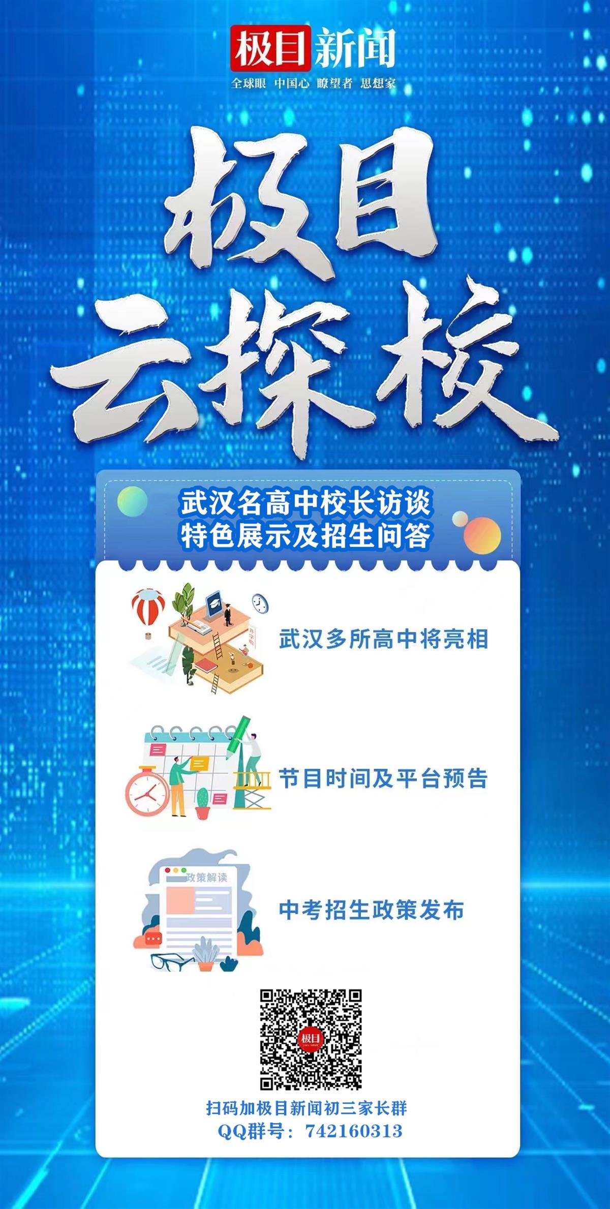 接下来,还有多所高中的校领导、招生负责人将做客“极目云探校”节目。武汉市初三学生家长可加入“极目新闻初三家长群”(QQ群号:742160313),我们将及时在群内预告下期节目时间,发布中招权威咨询,解答家长疑惑。