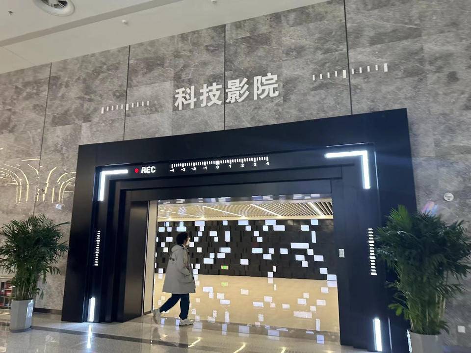 科普影视区,设有球幕影院、巨幕影院、4D动感影院、LED全沉浸式影院等6个科普影院和1个科普影视剧场。其中,巨幕影院银幕29米宽、21米高,采用世界最先进的IMAXGT激光4K放映系统播放,处于世界领先地位;球幕影院直径29米,是国内最大的薄壳混凝土影院。