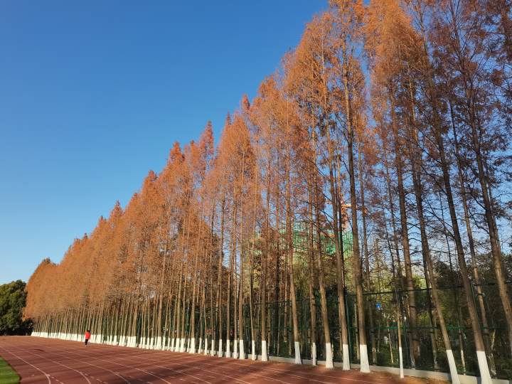 最近,杭电下沙校区行政楼北边的水杉林,成功吸引了诸多摄影爱好者的注意。那沉郁的橙红色,在严冬下倔强傲立,撑起颜色逐渐单调的冬日里的“大片火热”。