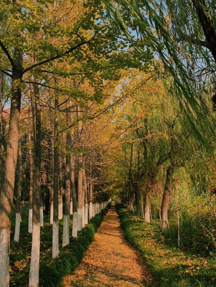 盐碱地土质下,高大的树木相对难以种植。周边很多高校种植的树,好比是黄毛丫头,树枝病态,树叶凋零。而杭电这里的水杉林却得益于学校建设时期堆积的陈土。建设校园时,陈土没有外运是为了节省成本。想不到变废为宝,陈土却培育了树木的成长。如今小树长成栋梁,错落有致,还成了冬日里的网红树林。