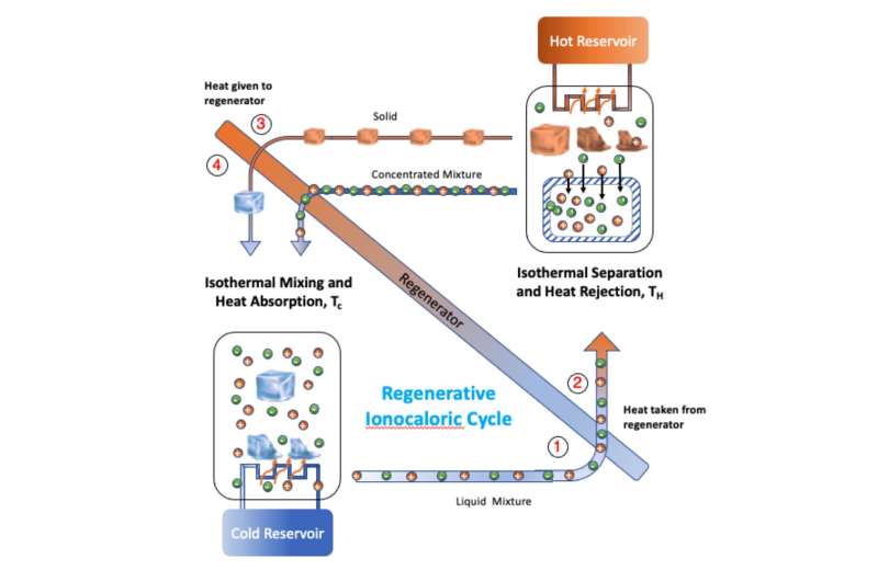 研究人员将该过程称为“离子热”制冷,并建造了这样一台冰箱来证明它是可行的。他们从一个盒子开始,然后添加了一个混合两种成分的设备和另一个通过电渗析以去除盐分的设备。他们对最终设备进行测试,以确定它是否能将箱内温度保持在稳定的冷却温度,如果能,它的效率是否高于或低于其他制冷设备。