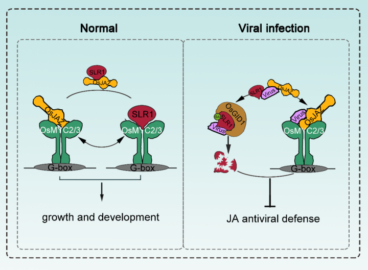 该研究发现多种病毒蛋白促进寄主抗病因子SLR1降解实现对一系列抗病毒免疫过程的调控,进一步拓宽了对于水稻病毒反防御植物激素信号转导网络的认知,并为水稻抗病育种提供了新的思路和靶点。