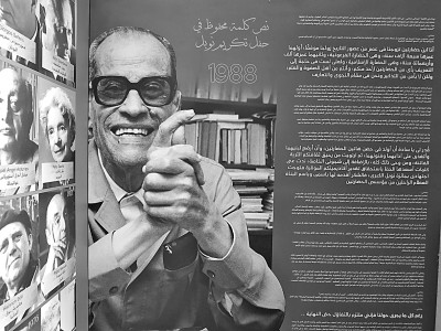 马哈福兹博物馆内展出的作家获奖词。黄培昭摄
