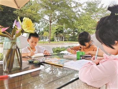 “13岁的小冰在东莞读初二,他有点沉迷手机,自上网课以来作息常常日夜颠倒。他的妈妈工作也很忙,就把小冰托管在我家;5岁的东东是从成都来的,在我家已经生活了两个多月。”宏岩和小冰、东东的家长商议好,三家合租下了一栋海边别墅,宏岩每天上午督促小冰上网课,中午大家一起午休,下午宏岩的老公又会带着孩子们去沙滩运动或者徒步。