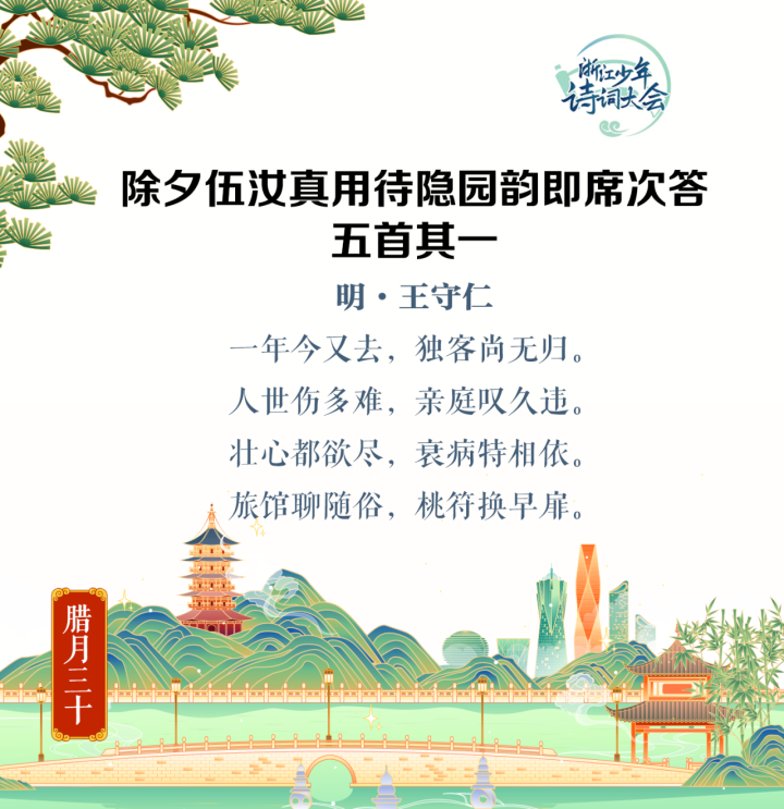 兔年春节之际,我很高兴通过钱江晚报小时新闻,和大家分享除夕到正月初六这7天的古诗词,和喜爱传统文化的同学们一起,过一个诗意的春节。