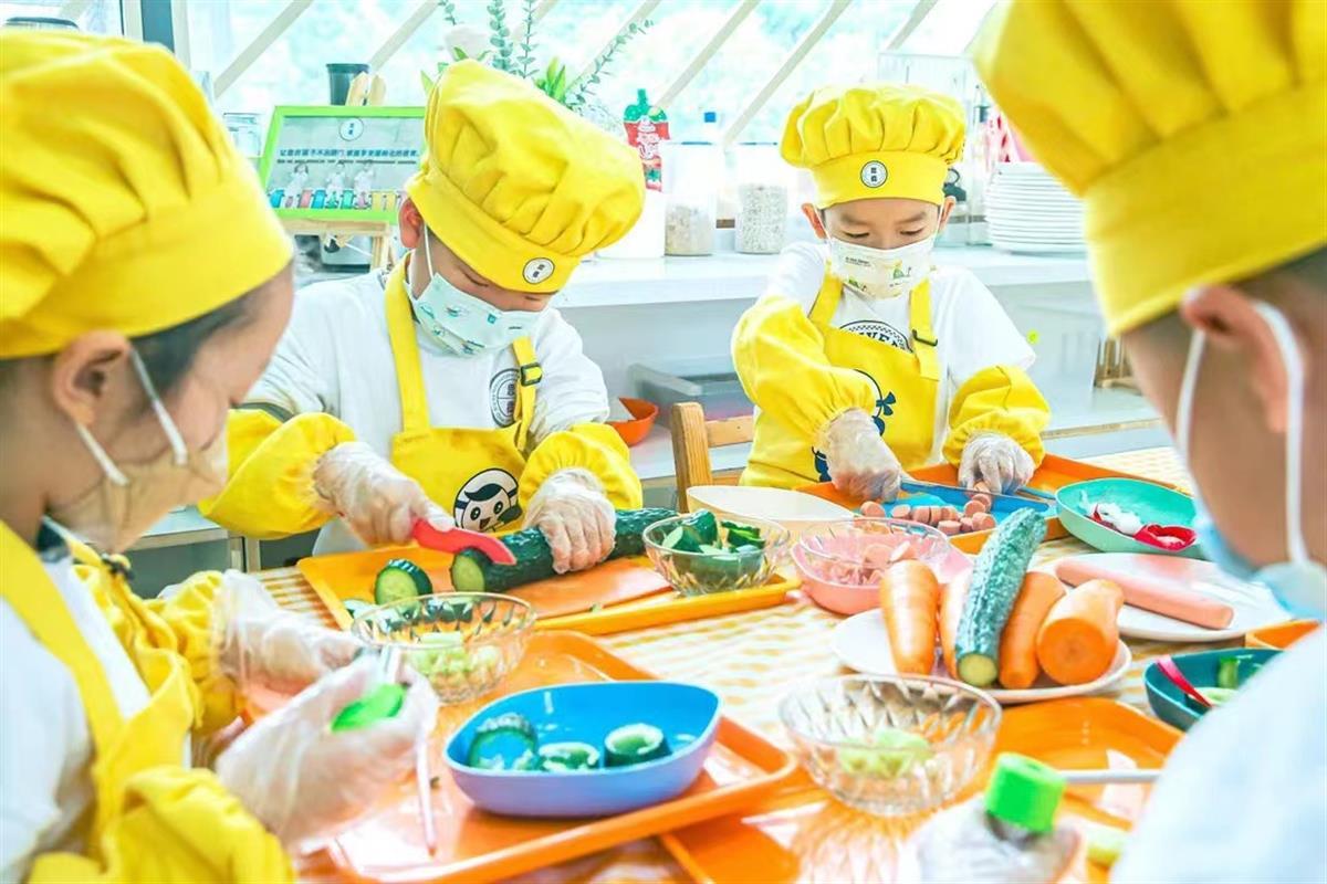 思桥集团从幼儿园教学课程设置的角度,确立了“食为依托·育为本质”的生活化食育课程,研发了“自然、节气、食物、身体”食育课程内容,创设了别具一格的生活区特色环境,让孩子们通过与食育材料、环境以及同伴的充分互动,在体验操作中养成良好生活习惯,培养健康的生活方式。
