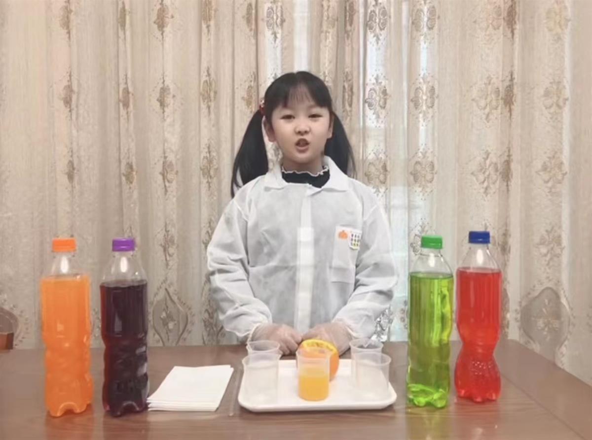 去掉色素的饮料,你还敢喝吗?该班学生蒋雨桐在春节期间就做了这样一个实验。蒋雨桐告诉记者:“我准备了各式饮料,还有一杯新鲜好喝的鲜榨橙汁。然后利用吸色片把饮料中的色素给吸出来。随着实验的进行,各种五颜六色的饮料慢慢变成了白色,但是鲜榨橙汁还是一样好看的橙色。”