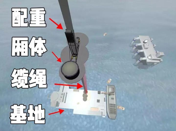 为了解决这个问题,我们在向下放缆绳的同时,也必须向上“扔”东西,产生一个向外的拉力,以此抵消缆绳对卫星向内的拉力。向上“扔”的东西必须足够重,能够把卫星给稳住,我们把它称为配重。