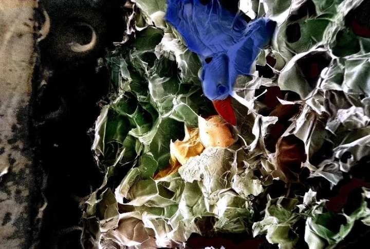 作品简介:本作品将EVOH母粒和催化剂共混在DMSO中,采用相转化法制备改性EVOH膜。凹凸不平的微结构,犹如崎岖的山路,蜿蜒成一幅秀丽的山水画。曲直的山路上,一个弯腰、努力攀登的人,一步一个脚印,正向着山顶进发,正如老一辈党员同志们为了国家的发展、人民的幸福,踔厉奋发、勇毅前行。