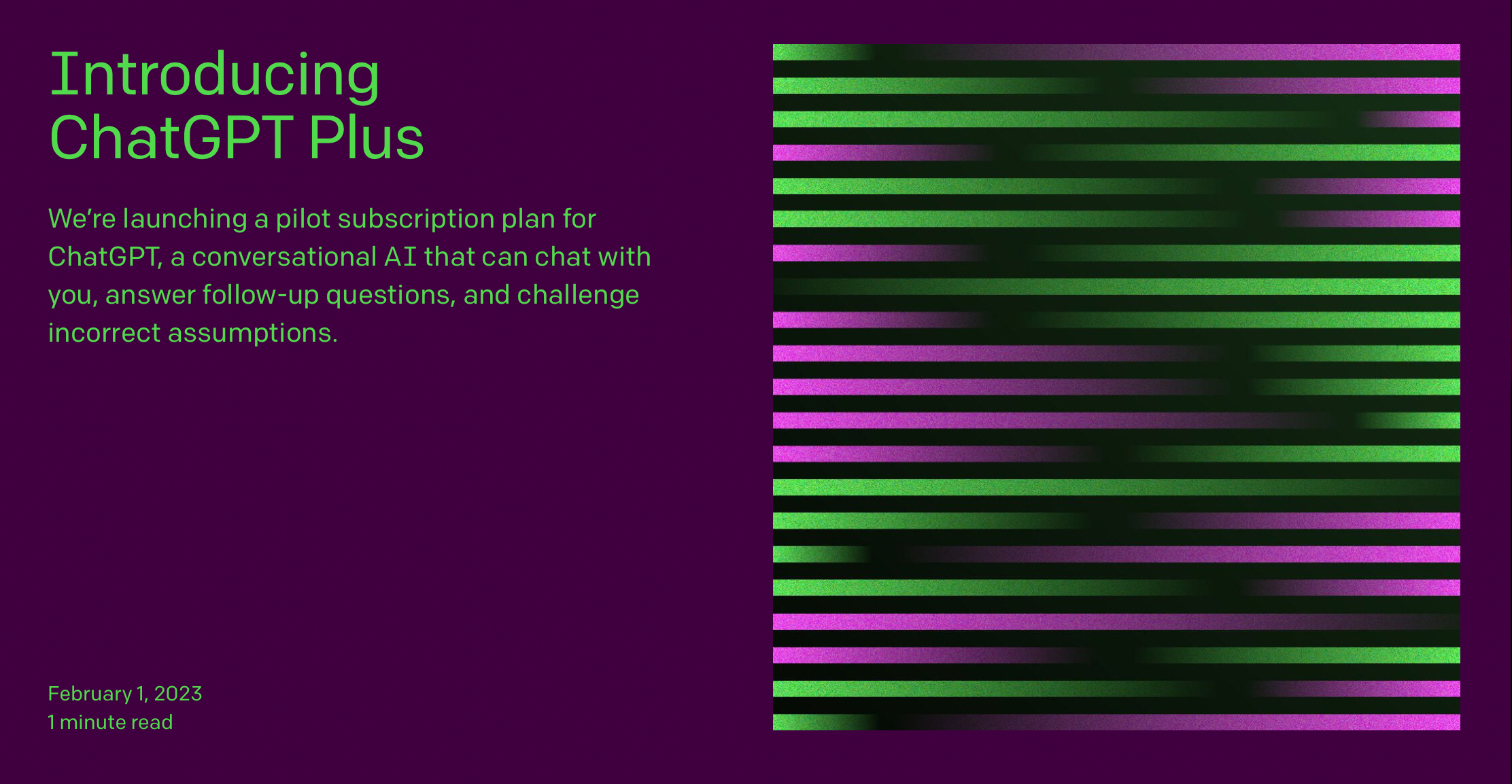 OpenAI在1月初提到了ChatGPTPlus的推出,宣布它“开始考虑如何使ChatGPT货币化”,并公布了一项调查,概述了“ChatGPT专业版”计划的定价和功能。然后,几周前,一些ChatGPT用户报告说,他们被授予了每月42美元的专业级别权限。