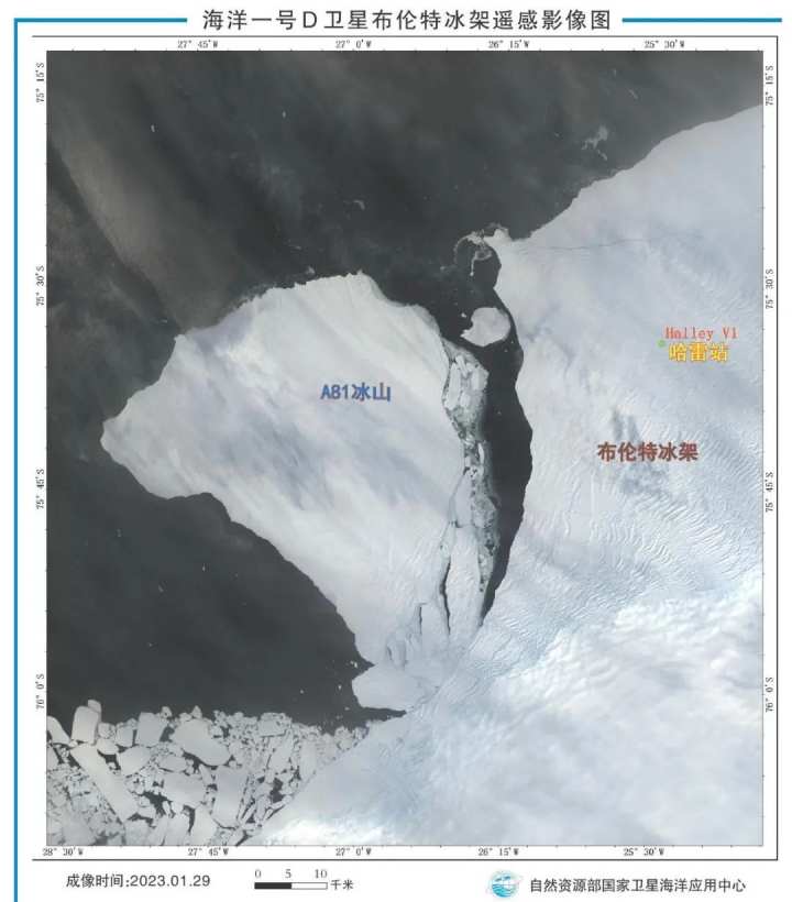 1月23日,英国南极考察处研究人员发现,一座面积接近英国大伦敦地区的巨大冰山从考察处附近的布伦特冰架脱落。