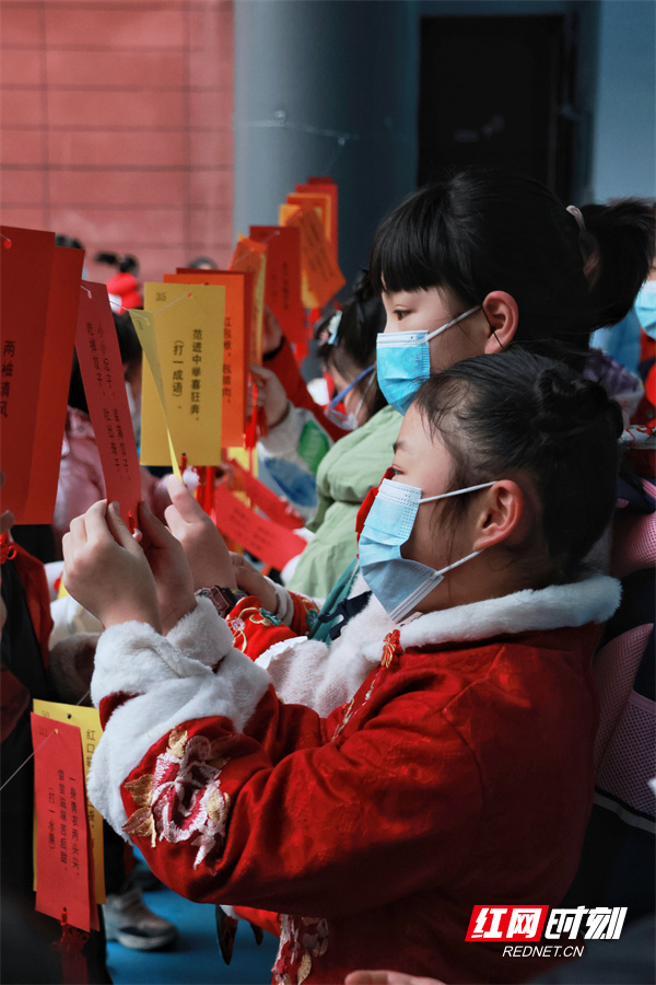 红网时刻新闻2月5日讯(通讯员文峥桢图片黄可)开学仪式是新春礼赞生机与希望的又一次出发。2月4日,正值开学报到日,长沙开福区清水塘小学校园里不仅有开学的“燃”,还有一份书卷气息的浸润和文化自信的输出。学校将猜灯谜、闹元宵活动化作节日的问候和新学期最美好的祝福,让清小学子在书香中了解传统文化,感受民俗文化的魅力,收获知识与甜蜜。