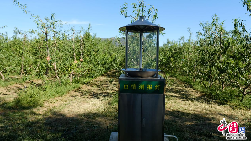 在现代农业产业园的“未来果园”里,采用了无人机洒药、机械化除草、施肥等28种新的科技手段。风吸式杀虫灯、小型气象站、虫情测报灯等设备,在桃林边矗立着,成为桃林的“安全卫队”。保障果品安全性,已经成为峪口镇现代农业产业园的核心追求和管理准则。一系列有着高科技含量的做法,有效提升了平谷大桃的质量和产量。
