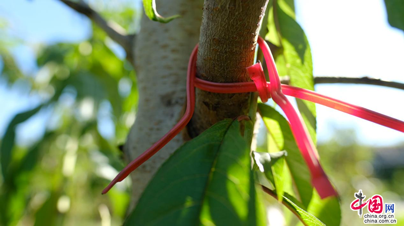从桃树种植的农业科技实践中,人们能看出数字技术、智能科技、生物技术的大量有效应用。绑在桃枝上的“红丝带”,是一种名叫“迷向丝”的生物防治手段。危害桃子生长的主要害虫是梨小食心虫,害虫被这红丝带中的迷向思元素所迷惑,便失去追求异性繁衍后代的本能。大桃从此不再受这小害虫的“钻心之痛”,平谷大桃的品质、品相和口感,也因此得到大幅度提升。