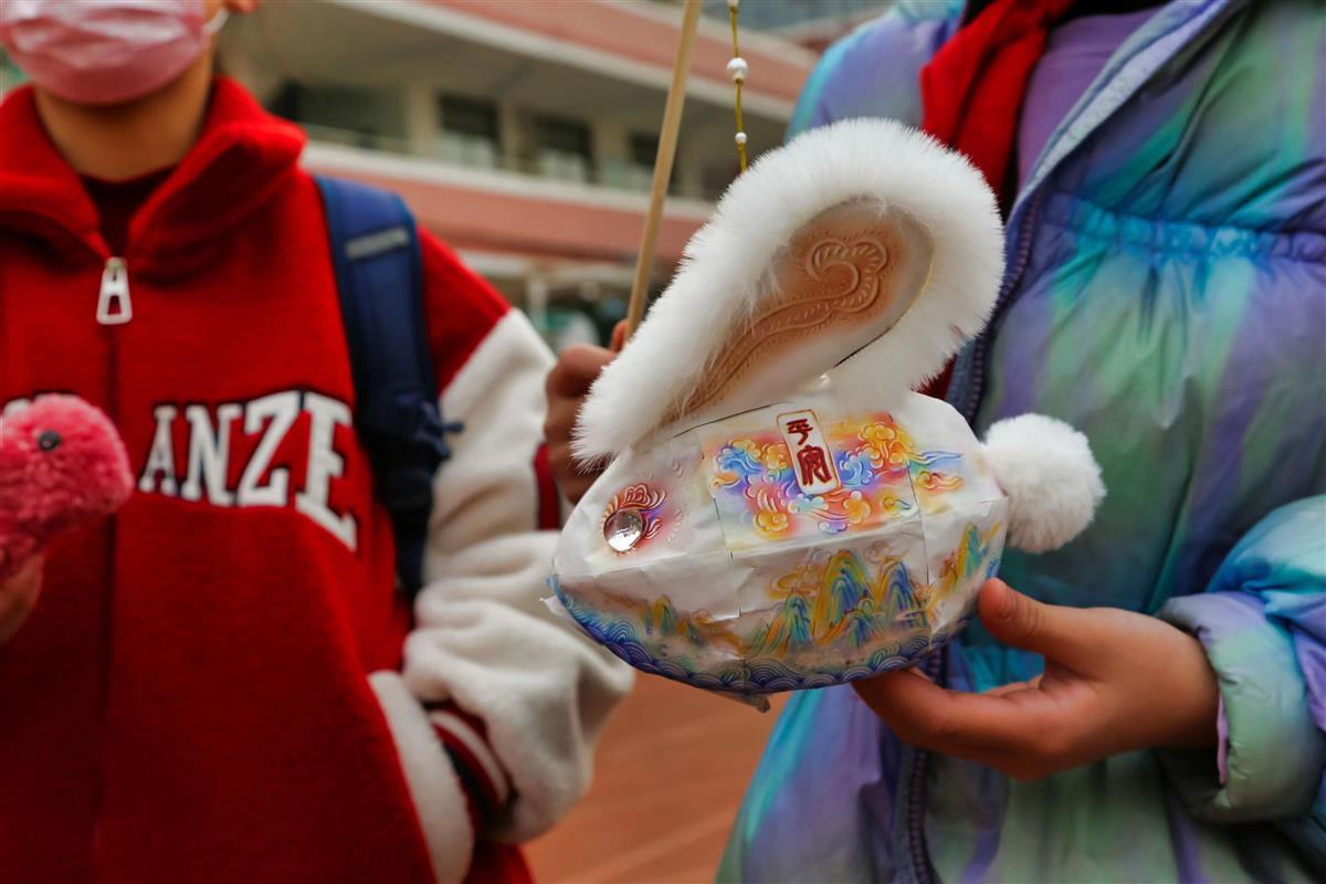 6日清晨,同学们有的戴着创意十足的小兔头饰,有的提着亲手制作的小兔灯笼,有的穿着喜庆的传统服饰……喜笑颜开地走进校园。这一盏盏自制花灯、一顶顶花帽展示了学生们无限创意和实践能力。他们用智慧和巧手装点了校园,每个角落都洋溢着节日的喜悦气氛。中国的春节素有“迎福”“纳福”的习俗,崇仁书法社团的同学们铺开红纸,提起毛笔,写下苍劲有力的“福”字。他们将“福”送到每个班级,贴在每间教室的大门上,寓意着诸事和顺,平安幸福。