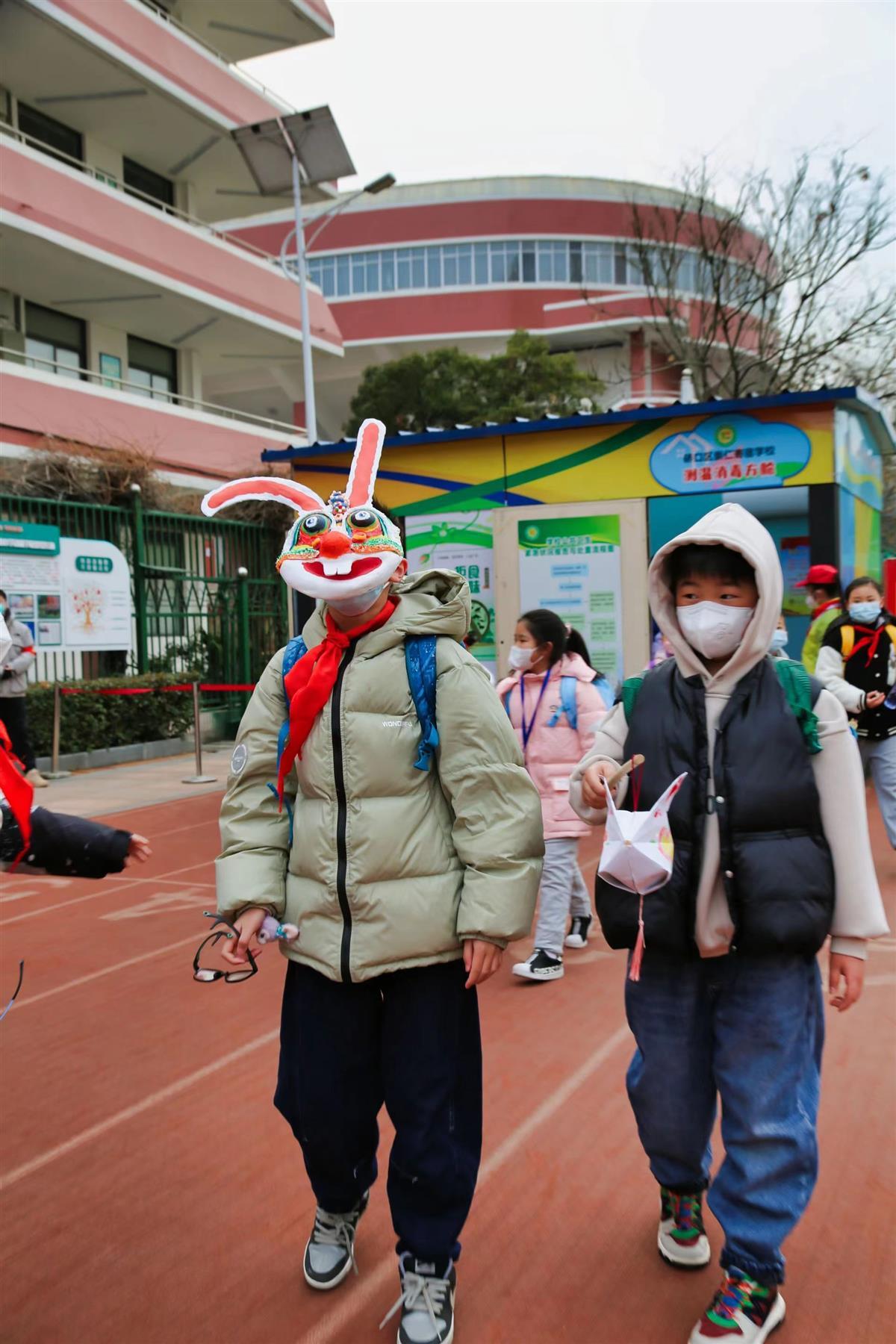 “老师,快看我的‘探月一号天宫兔’!”“老师,这是我自己做的玉兔灯笼!”沉寂了一个寒假,崇仁路小学的校园又恢复了往日的活力。