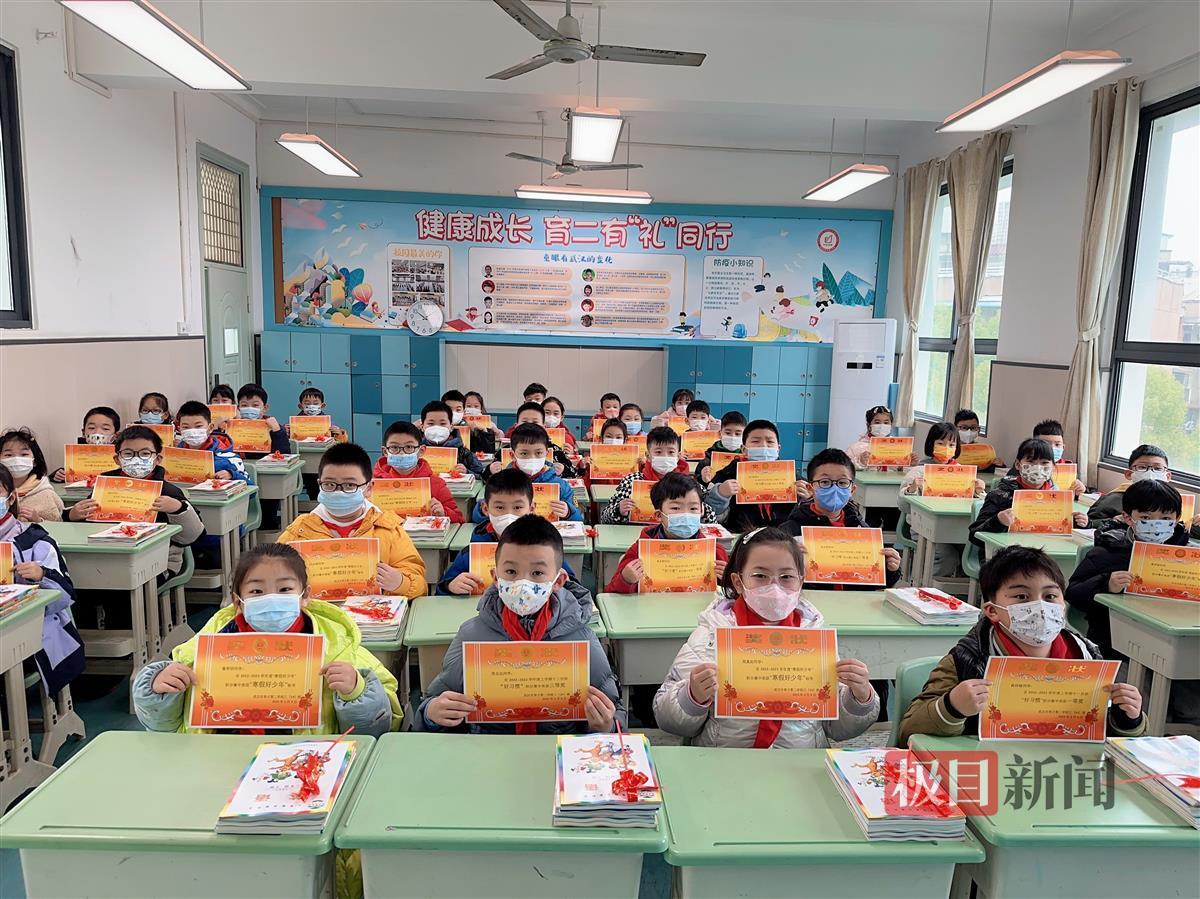 新年立志,就是这么重要。在武汉市育才第二小学,每个学生都收到了一份写满鼓励、满含期待的奖状,校长纪红告诉孩子们,本学期学校将全力打造包含“书香生态”“书香文化”“书香课程”等的立体化书香校园,希望每位学生在新学期里继续为自己点亮一盏小桔灯,成为小小朗读者,让书香滋润生命。武汉市江汉区红领巾学校CBD校区的孩子们走上舞台,扮演中国机长、消防员、交通警察、医生、科学家、舞蹈家、歌唱家、画家等,用朗诵的形式讲述他们的梦想,他们说,要向逐梦者看齐,努力学习,拥抱梦想。武汉市东湖实验学校八年级(5)班班主任郑颖为全班学生准备了文具盲盒,并在礼物上写下“逢考必过”“旗开得胜”“不负韶华”等祝福,抽到礼物的同学也把新学期愿望分享给全班:“考上理想的高中”“身体健康,成绩更上一层楼”……
