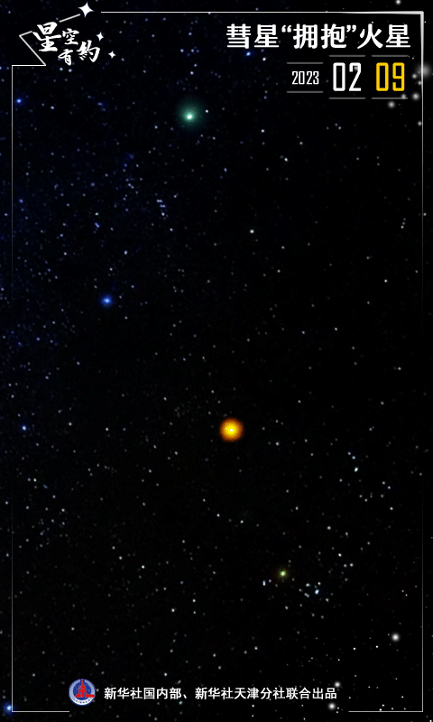 新华社天津2月9日电(记者周润健)近期,C/2022E3彗星备受关注。天文预报显示,2月11日这颗彗星将与火星“擦肩而过”。这两个天体在星辰大海中“拥抱”会擦出怎样的火花?如果天气晴好,我国感兴趣的公众不妨“拭目以待”。
