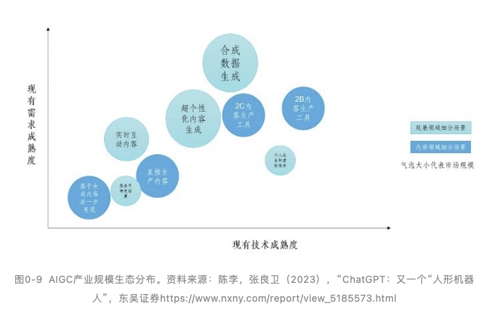 但可以预见,由于AIGC“原住民”的成长,2C(toC的简称)的商业模式将接踵而来。根据有关机构预测,2030年的AIGC市场规模将超过万亿人民币,其产业规模规模生态(见下图):