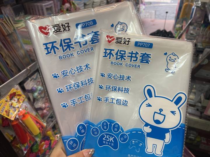 据店主们反馈,这学期销量最好的书皮款式,是能直接贴在书上的透明包书膜。一位店主表示:“我们店附近既有小学也有初中,书皮款式的流行的风向主要是学校的要求。我们店前几年比较火的是牛皮纸膜,但从去年开始,还是透明款书膜销量大。”