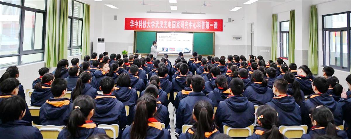 华中科技大学武汉光电国家研究中心的专家为学生们上起科普课