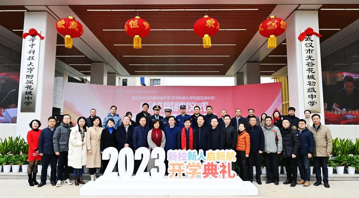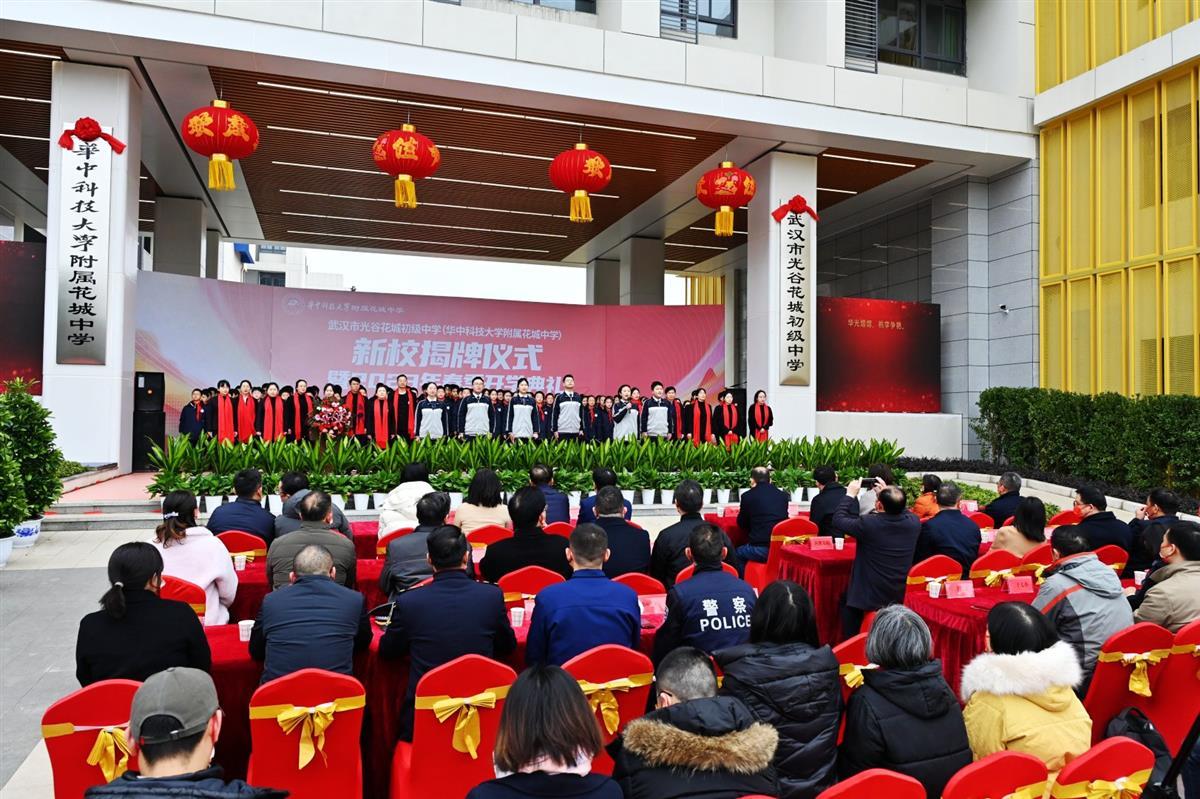 2月10日上午,武汉市光谷花城初级中学(华中科技大学附属花城中学)举行揭牌仪式。来自华中科技大学基础教育办公室、武汉东湖高新区教育局、武汉东湖新技术开发区花山街道办事处、华中科技大学附属中学的相关领导以及学校建设方代表出席揭牌仪式,武汉市光谷花城初级中学全体师生和家长代表在场见证。