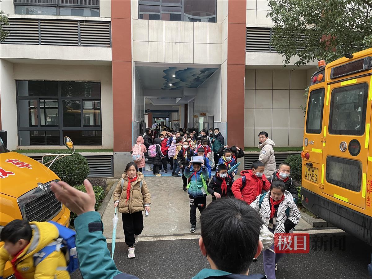 2月10日下午放学后,在老师和校车公司工作人员的引导下,学生迅速分流去往各自的车