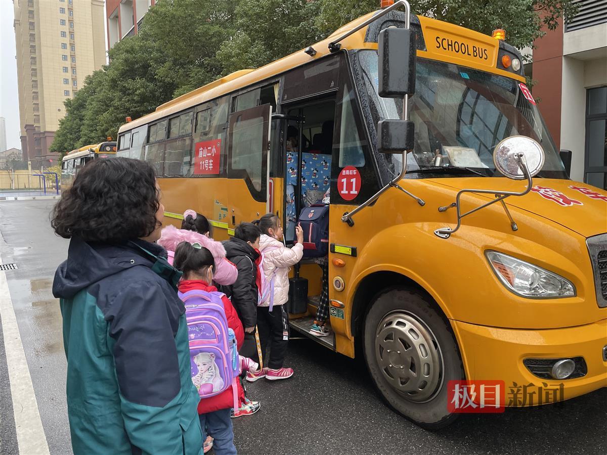 那么,经过一星期的磨合后,校车的运行是否令人满意?2月10日(周五)15时35分,庙山二小低年级的小学生们放学了,极目新闻记者和家住庙山新村附近的约40个孩子一起登上了3号校车,上车后,跟车老师一一核对孩子姓名并在家长群中反馈,10分钟后,校车到站,老师又组织孩子们排队下车,看着他们一一被在车站等候的家长接走;校车返程后,跟车老师再次检查是否有学生没有及时下车。