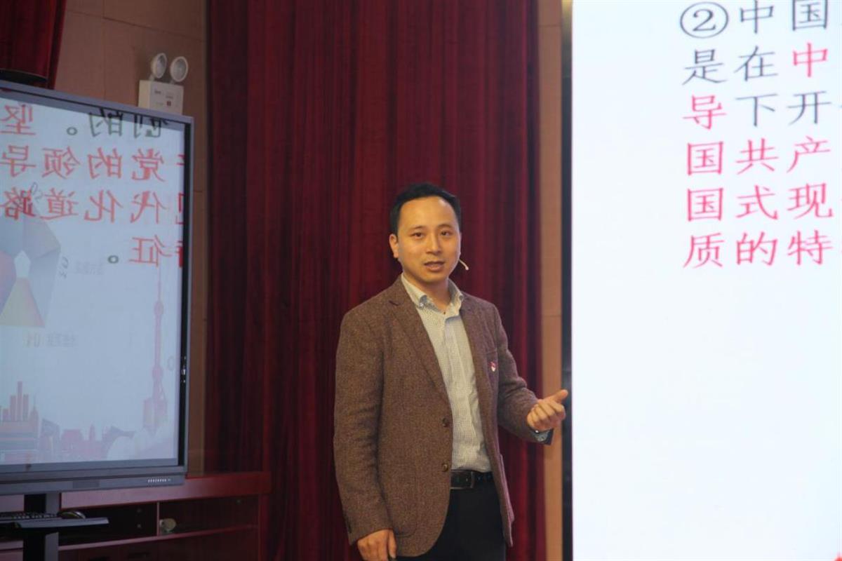 武大附中思政教师袁润强以《扎根中华大地 推进中国式现代化》为题,从现代化的概念入手,旁征博引、深入浅出地探究了中国式现代化和西方式现代化的异同,通过古今、中外的比较,总结了中国式现代化的实现路径,鼓励学生立足中国实际,扎根中华大地,自觉投身中国式现代化建设,在新时代新征程踔厉奋发,担当时代责任,争做时代新人。
