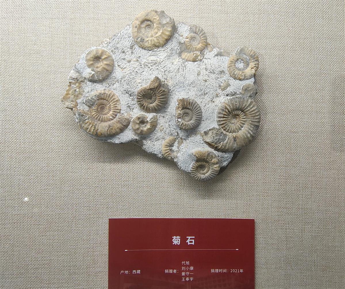 代旭等人捐赠的菊石化石标本在逸夫博物馆“校友捐赠藏品展厅”展出(通讯员李富强摄)