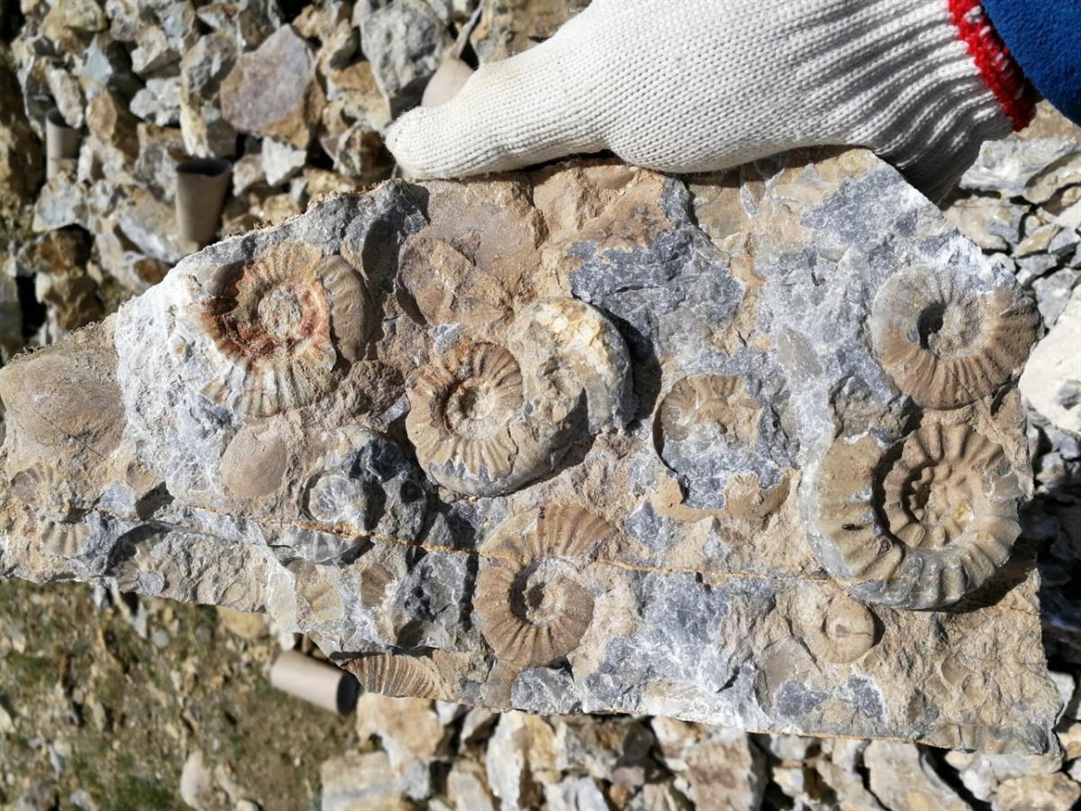 自从2014年进入宋海军教授团队后,代旭每年都会和团队成员一起到华南或者西藏采集化石。目前已经采集了上万块大化石,包括菊石、鱼类、腕足类、虾等等。