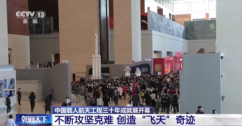 在“逐梦寰宇问苍穹——中国载人航天工程三十年成就展”上,两套中国自主研发的“飞天”舱外航天服,成为游客们争相合影的“打卡热门”。